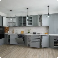 We can help with a full remodel, or if you only want to upgrade the cabinets and floors, with a partial remodel.